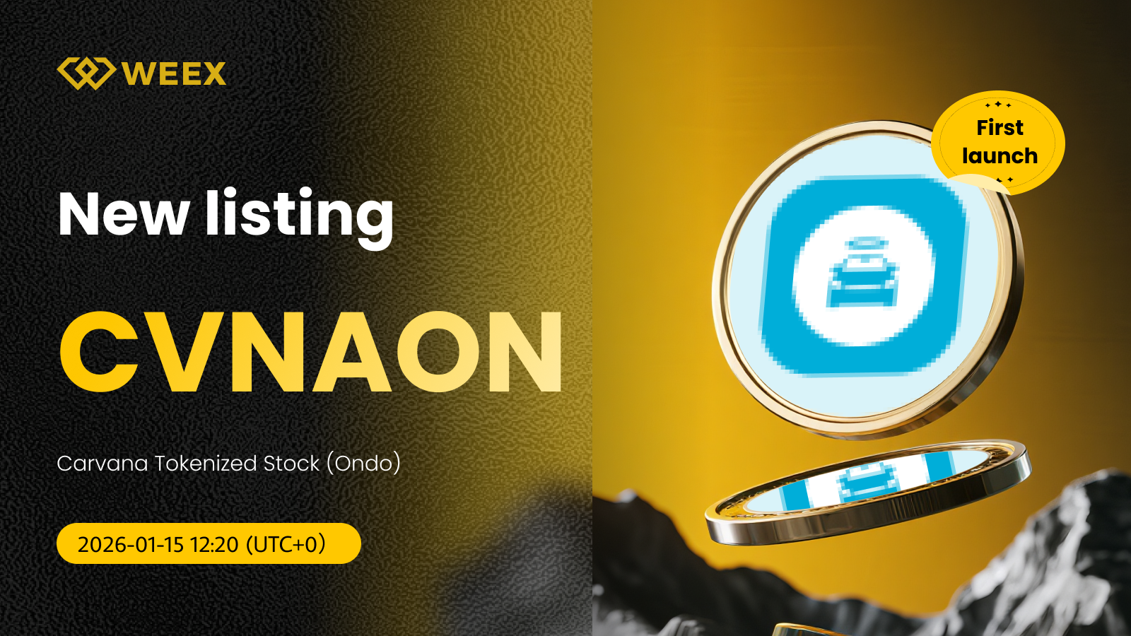 Carvana Tokenleştirilmiş Hisse Senedi (Ondo) (CVNAON) artık WEEX'te işlem görüyor!